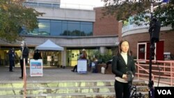 美国之音中文部记者海伦大选日在弗吉尼亚州一处投票站采访和报道。